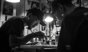 Подбирать краски и иглы, оборудовать рабочее место, стерилизовать инструменты и работать с тату-машинкой.